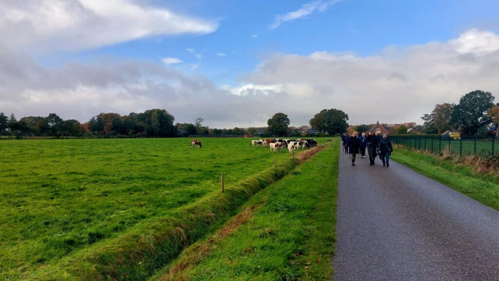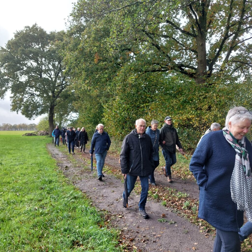 Vervolgens kon men meedoen aan een kleine wandelroute door West-Geesteren. Paraplu’s hoefden niet mee want het was eindelijk droog weer. Al keuvelend kwamen we door een klein stukje van West-Geesteren. Weer terug bij de wijnmakerij aan de Vinckenweg kregen de deelnemers nog een kom snert en een drankje aangeboden en kon men nog verder gaan met de gesprekken die tijdens de wandeling nog niet aan bod waren gekomen.