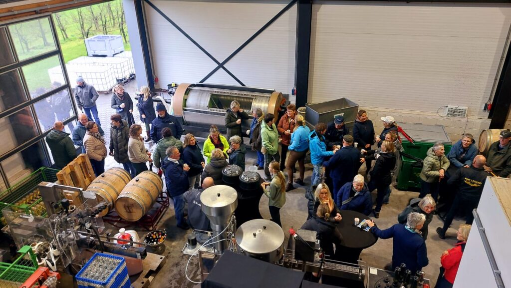 Nou, herfst was het die dag. Al de hele ochtend meer regen dan ons lief was. Maar toen de gasten bij de Wijnmakers binnendruppelden hield het buiten op met druppelen. De gasten werden verwelkomd met gluhwijn. Na een korte introductie door Frans Veltman was het de beurt aan wijnmaker Robert Spenkelink om het een en ander te vertellen over het ontstaan van de Wijnmakers en over het proces van wijn maken zoals ze dat hier in West-Geesteren doen.